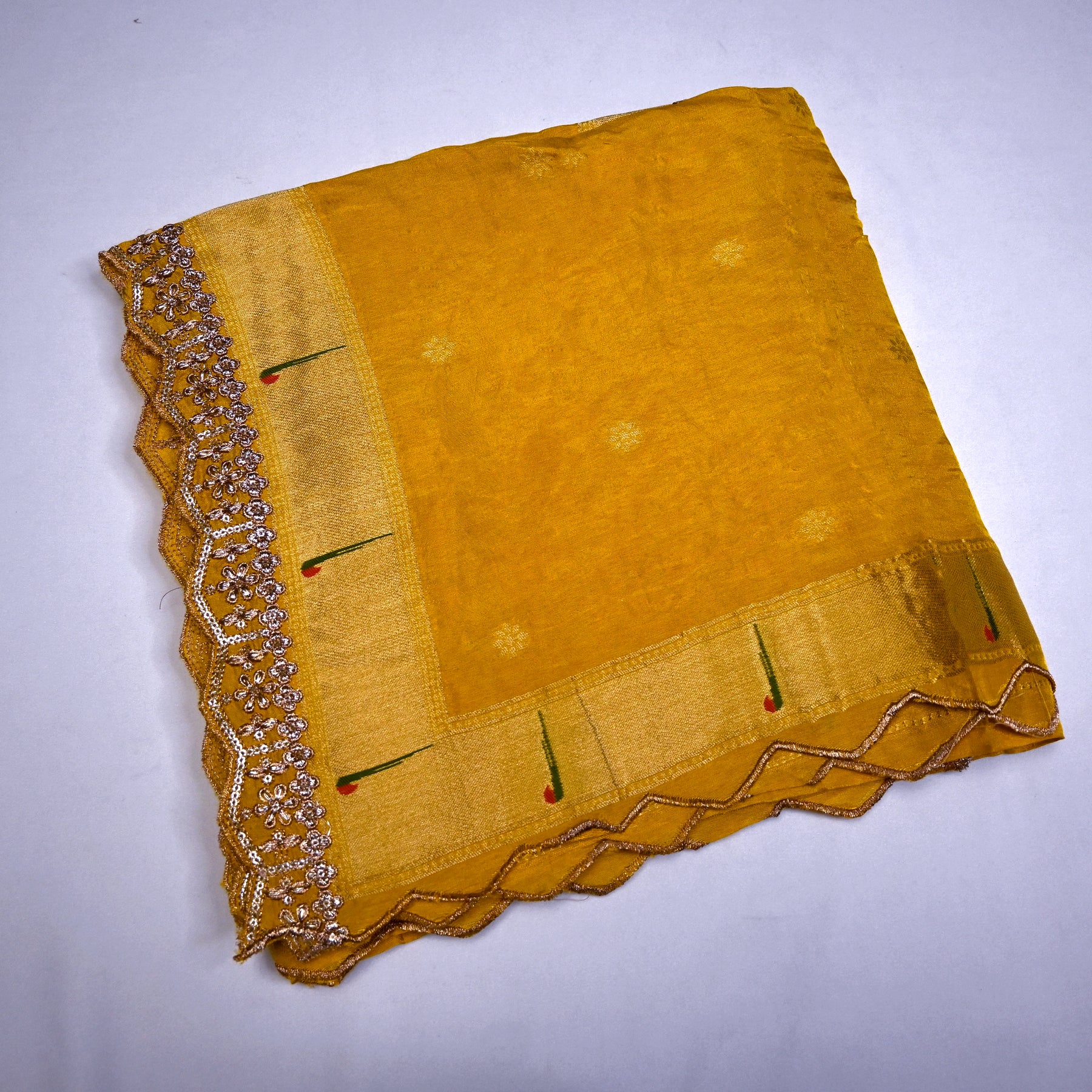 ✨ Dola Silk Zari Jacquard Dupatta with Scallop Border ✨