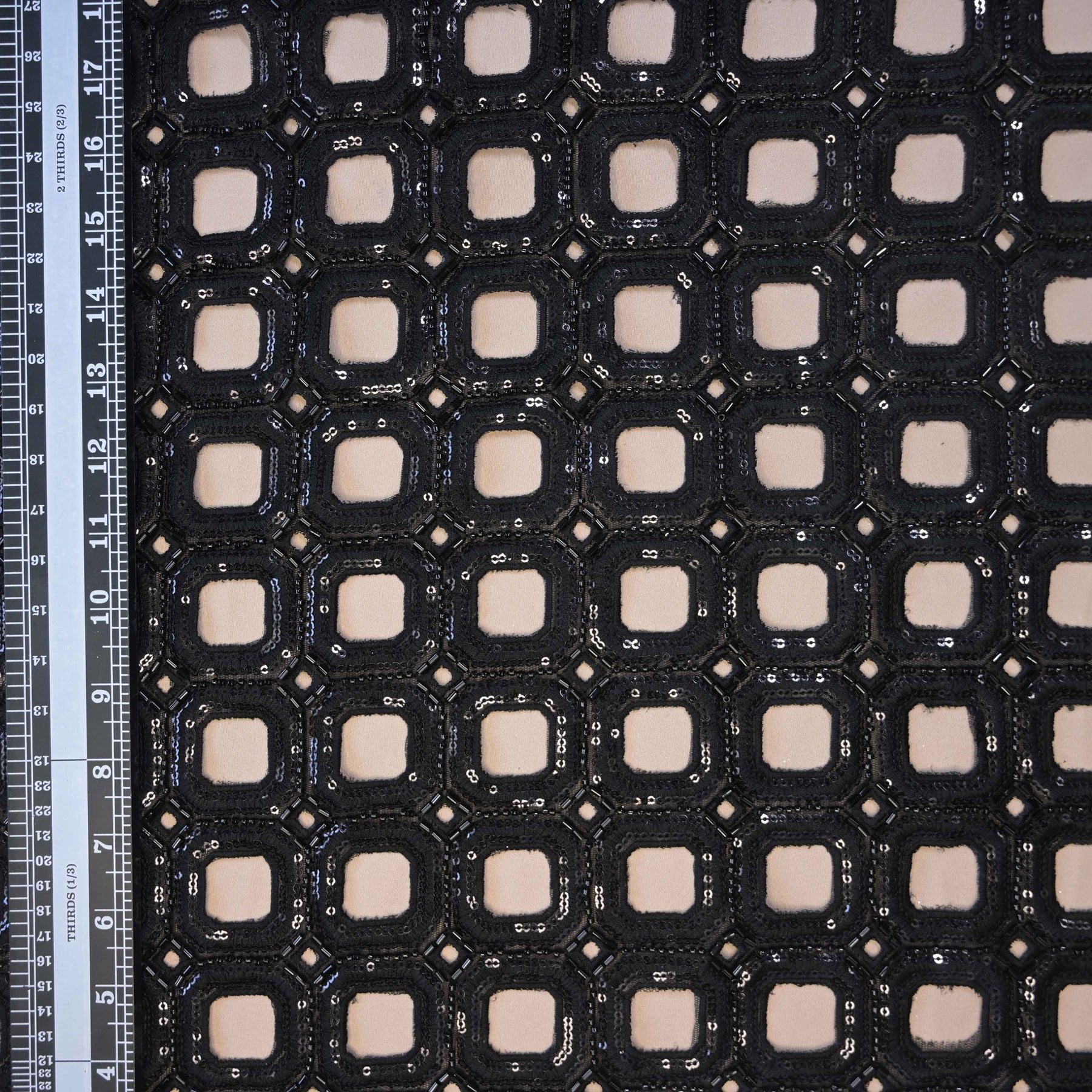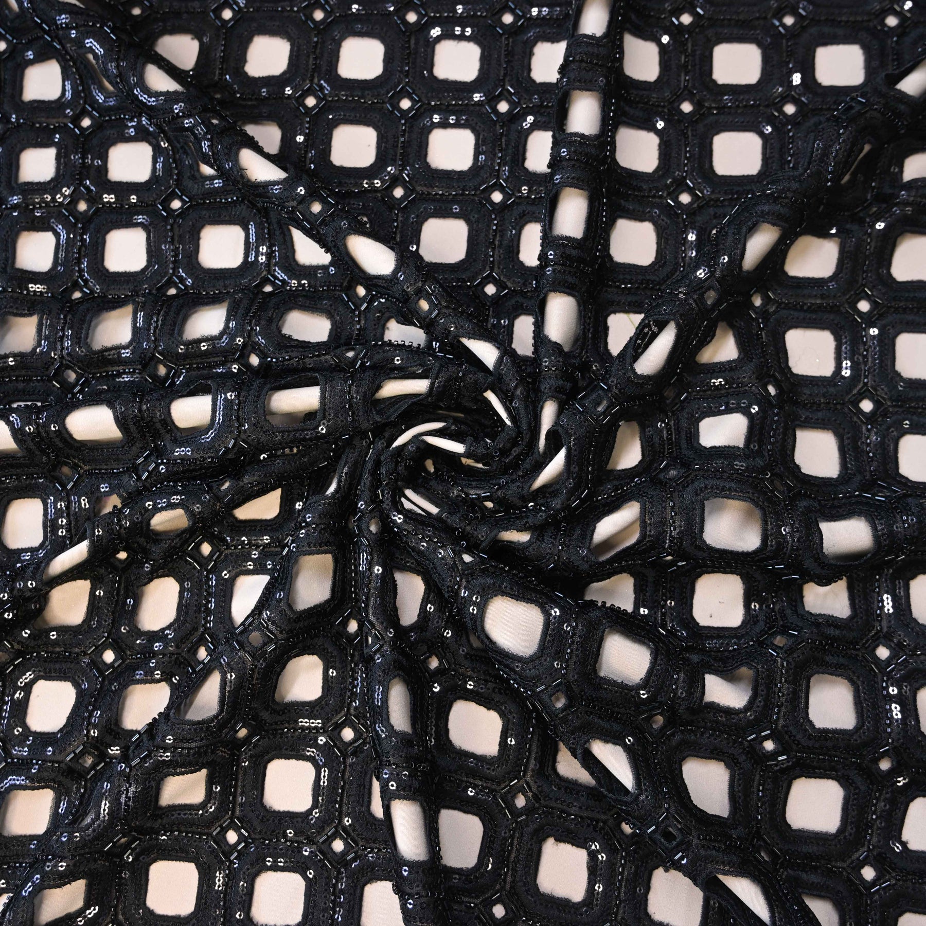 Black Geometric Net Cutwork with Cutdana & Sequins Embroidery