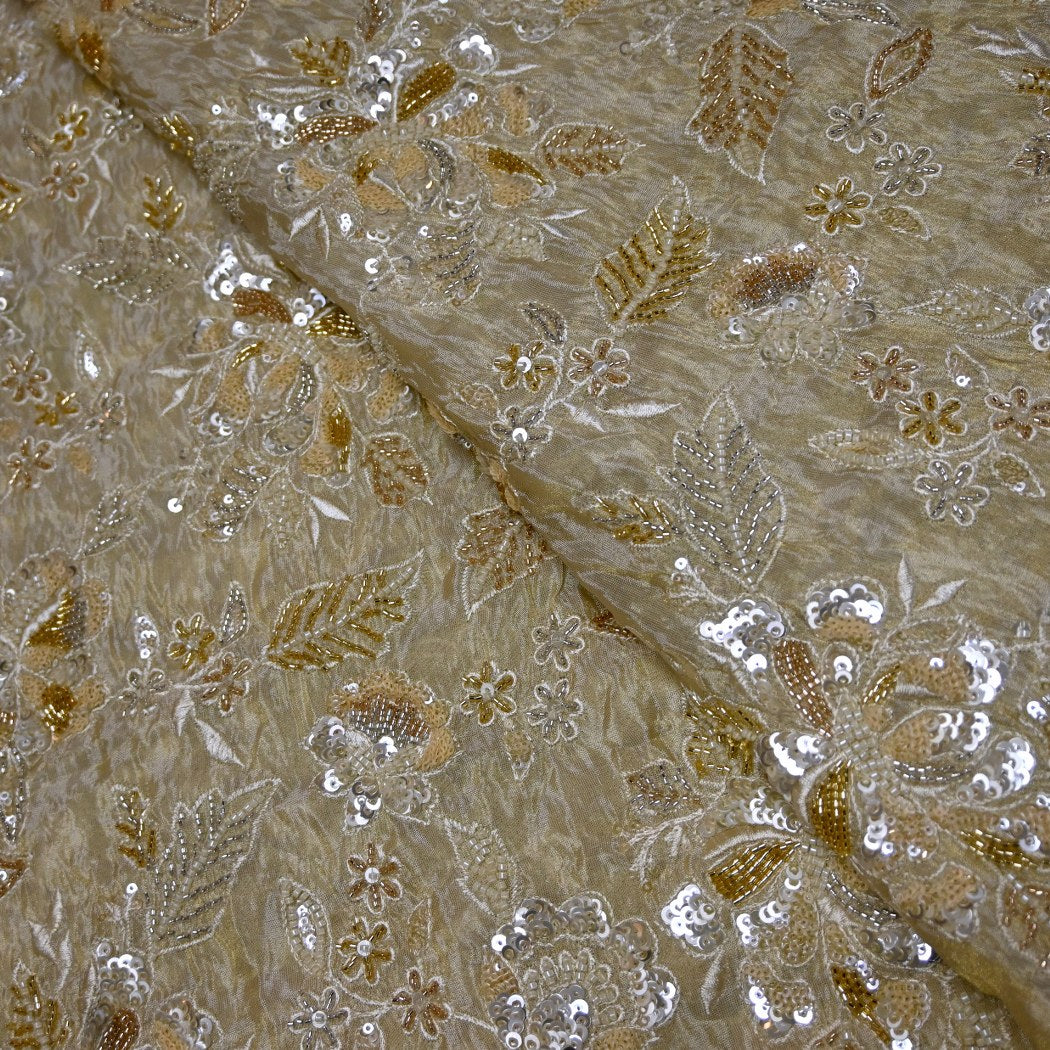Premium Dyeable Tissue Moti Sequins Embroidery Fabric