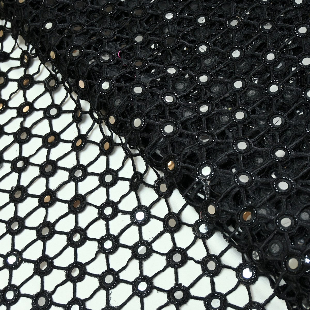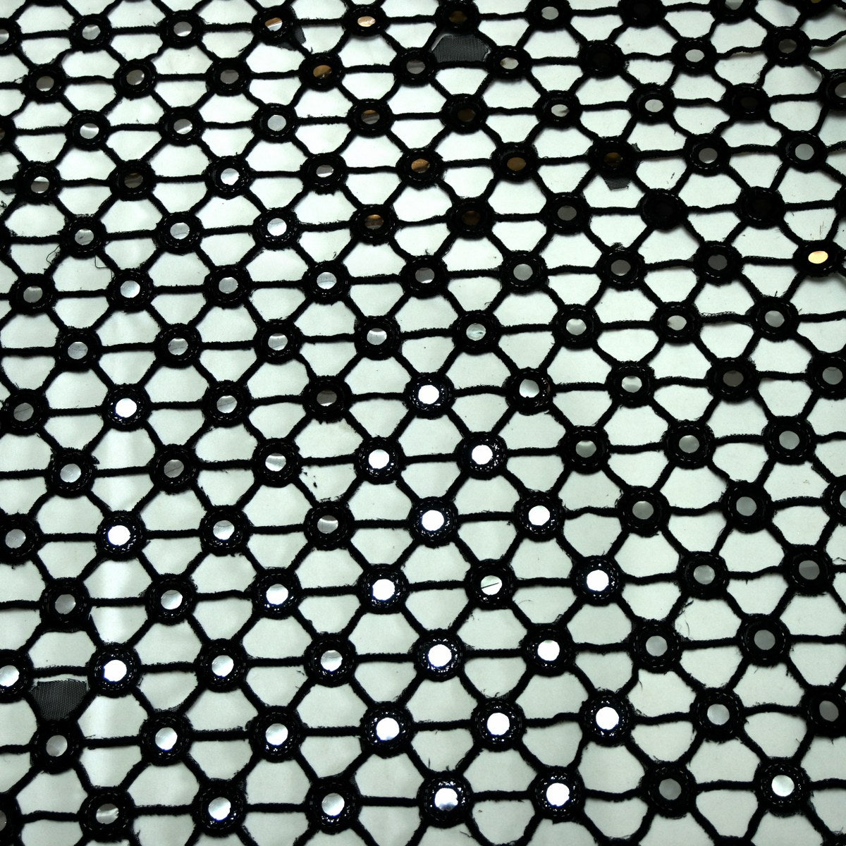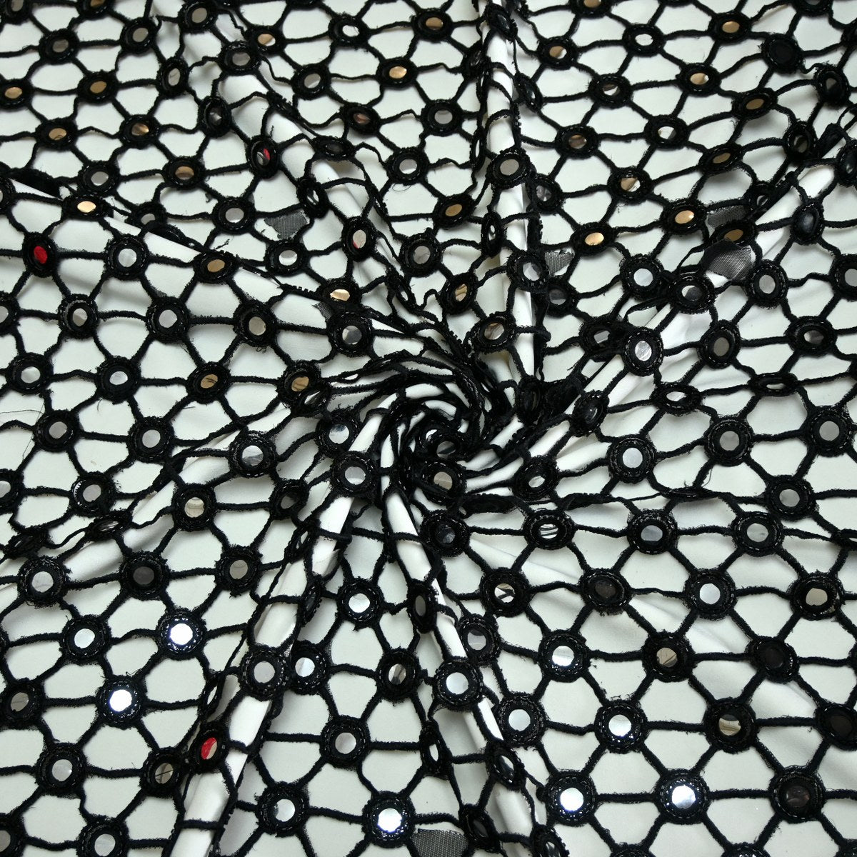 Dyed Net Cutwork Mirror Embroidery Fabrics