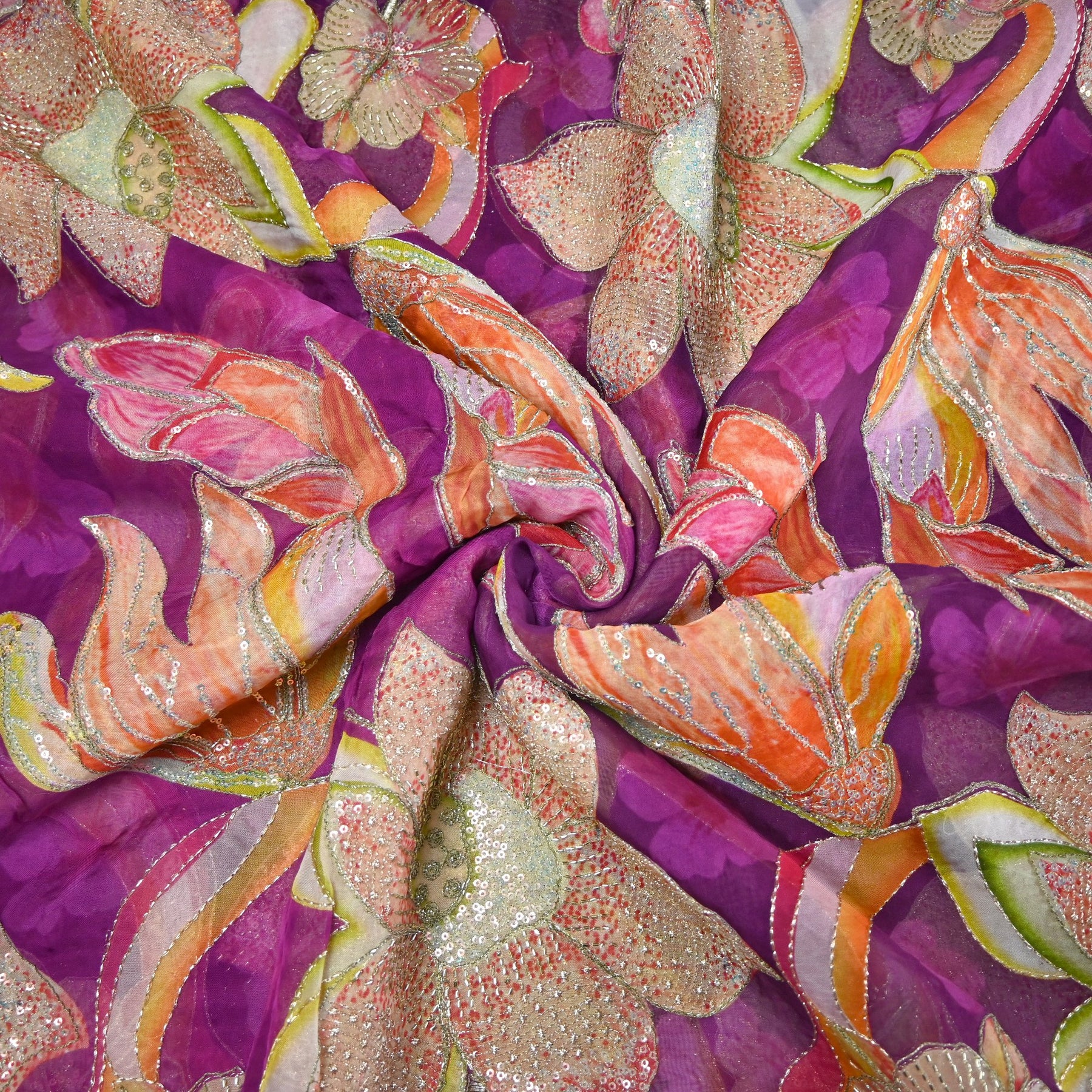 Elite Organza Position Print Fabric with Zari & Sequin Embroidery