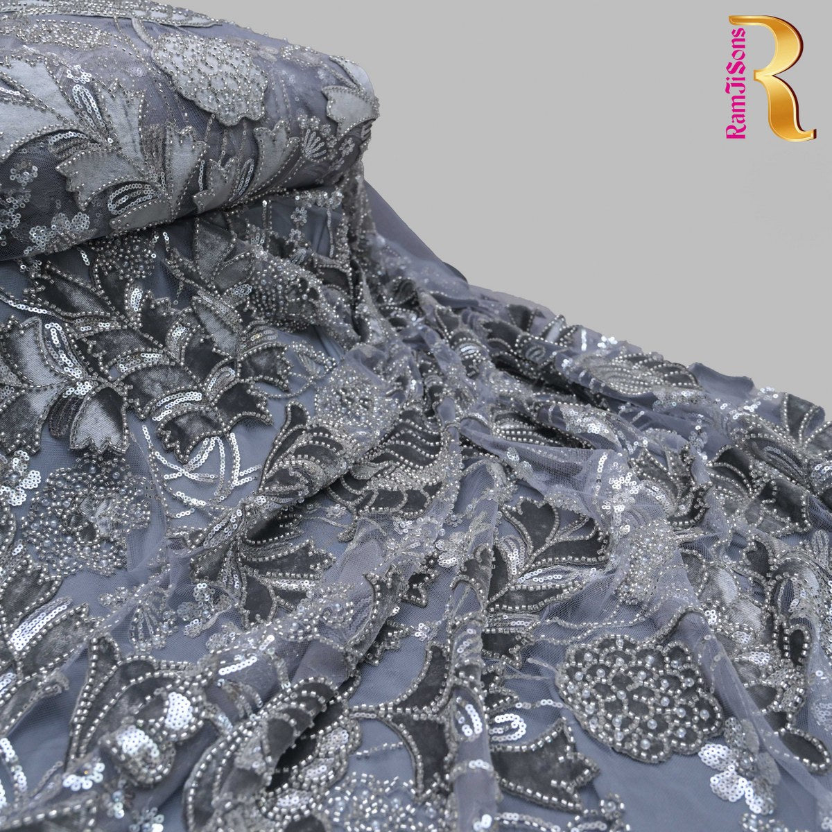 Add timeless luxury and rich texture to your designer creations with our Imported Net Cutdana Sequins with Velvet Patchwork Embroidery Fabric. Designed on a premium imported soft net base, this fabric showcases exquisite cutdana and sequin embroidery, beautifully enhanced with plush velvet patchwork motifs. The contrast of shimmering embellishments and rich velvet detailing gives this fabric a high-end couture appeal, perfect for statement ethnic and fusion wear.