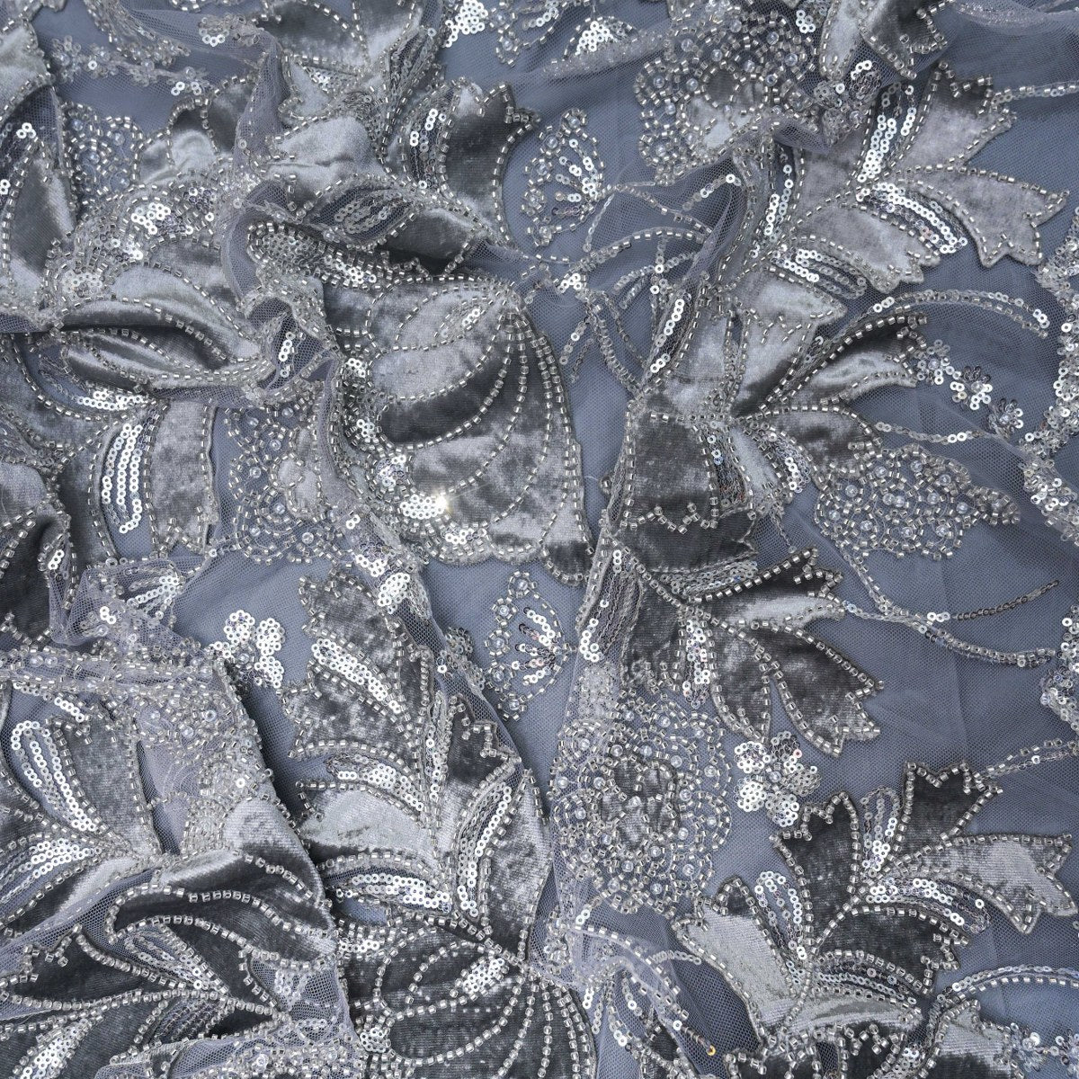 Product Name: Imported Net Cutdana Sequins with Velvet Patchwork Embroidery Fabric