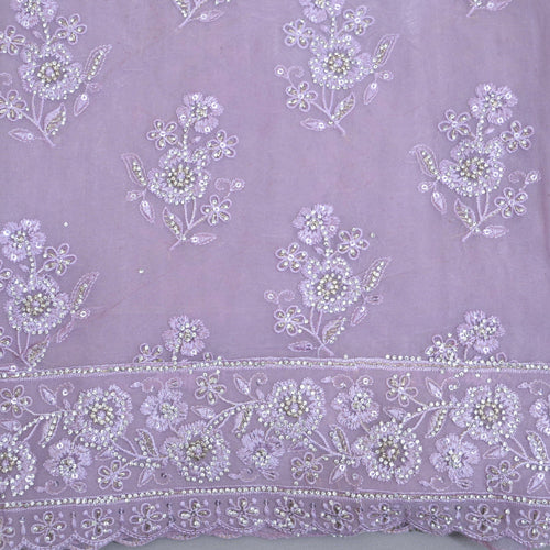 Elevate your ethnic wardrobe with this elegant unstitched suit set crafted in a soft lilac tone. The fabric is beautifully adorned with delicate floral embroidery and subtle sequin detailing, giving it a graceful and refined look. The intricate embroidered border adds a touch of luxury, making it perfect for festive occasions, celebrations, or formal gatherings. This unstitched set allows you to customize the fit and style according to your preference, ensuring both comfort and sophistication.