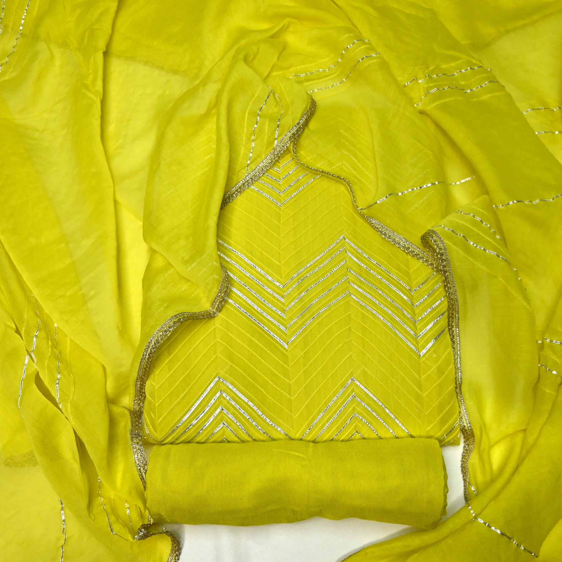 Pure Silk Chanderi Gota Patti Printex Unstitched Suit Set