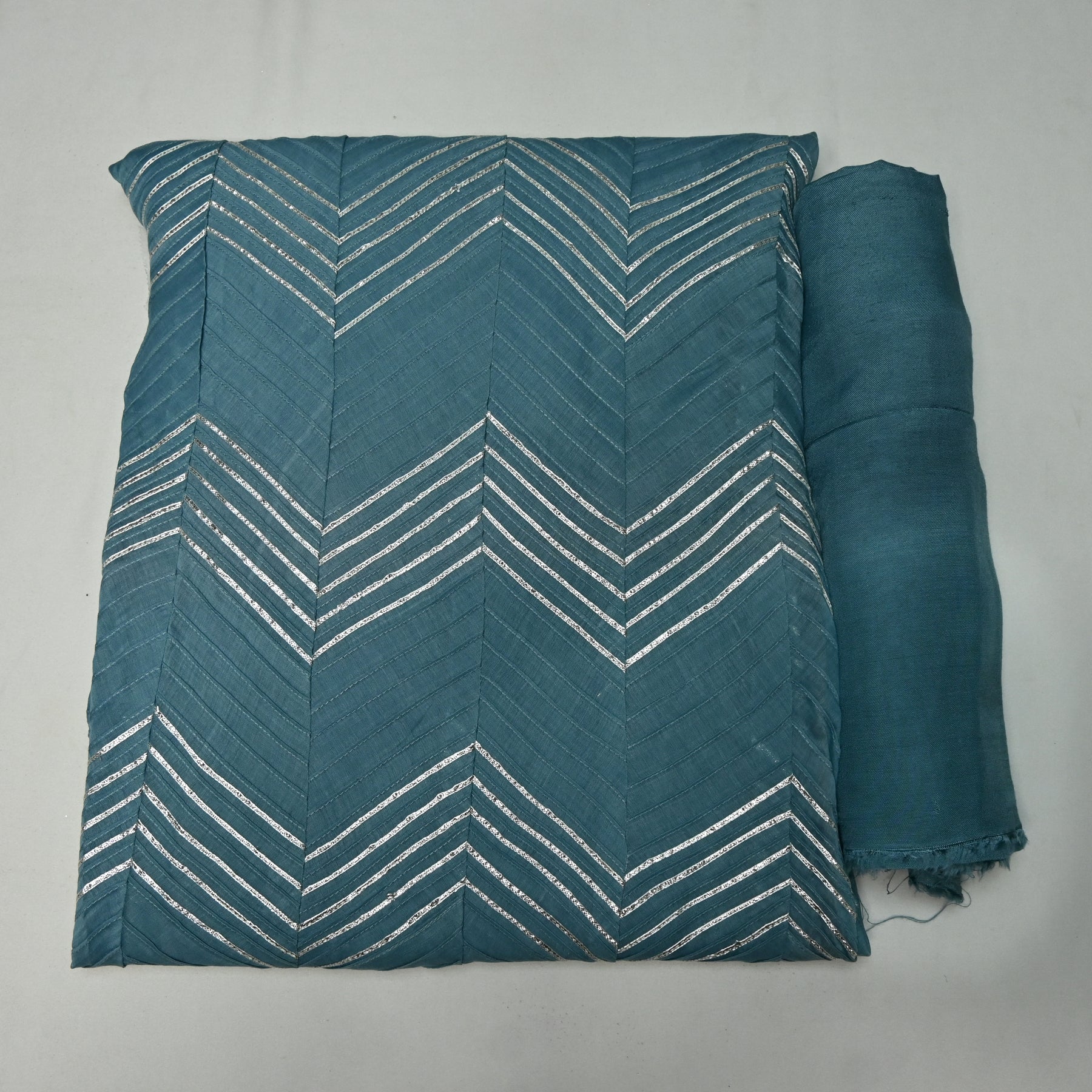 Pure Silk Chanderi Gota Patti Printex Unstitched Suit Set
