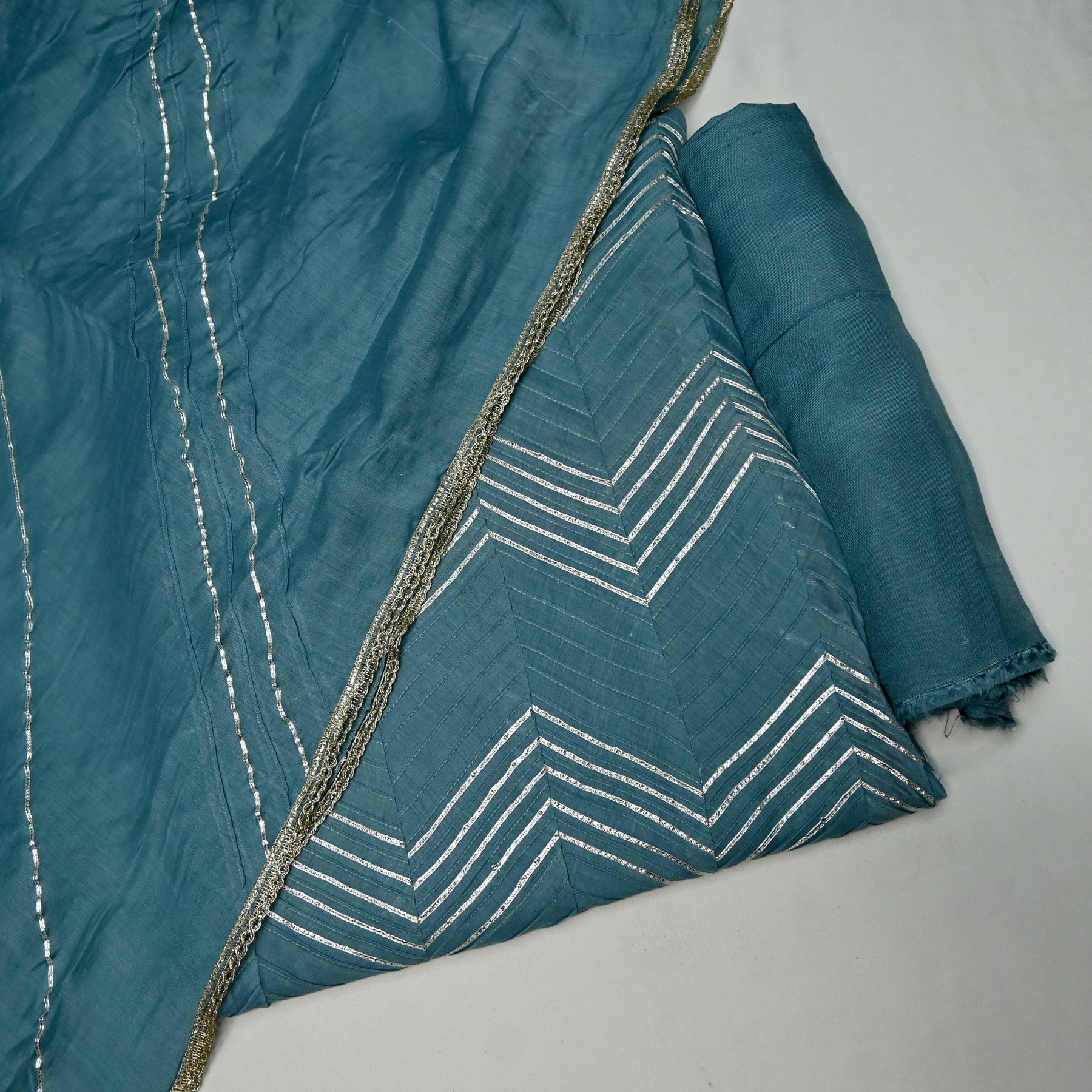 Top Fabric: Pure Silk Chanderi with elegant printex designs and intricate Gota Patti accents, perfect for kurta, Anarkali, or designer suits.