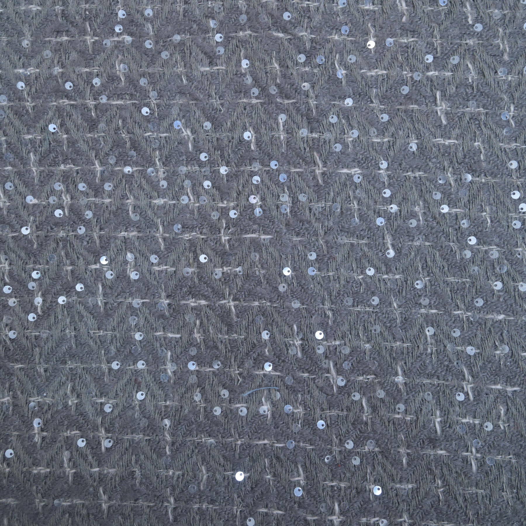 This fabric features a dark tweed-style weave with a refined, textured surface. Subtle metallic flecks are interwoven throughout, creating a soft shimmer that adds depth and visual interest without overpowering the design. The structured weave gives it a durable yet elegant feel, making it suitable for tailored garments, jackets, skirts, or statement upholstery. Its rich charcoal tone and understated sparkle lend a modern, sophisticated character with a timeless appeal.