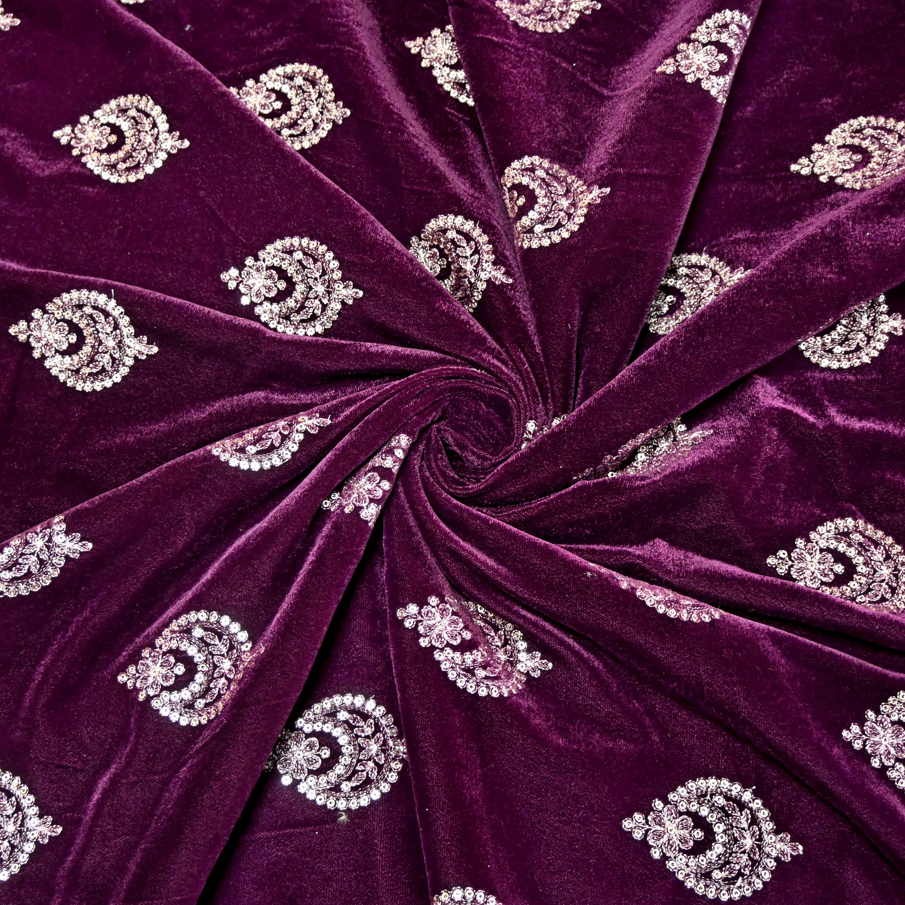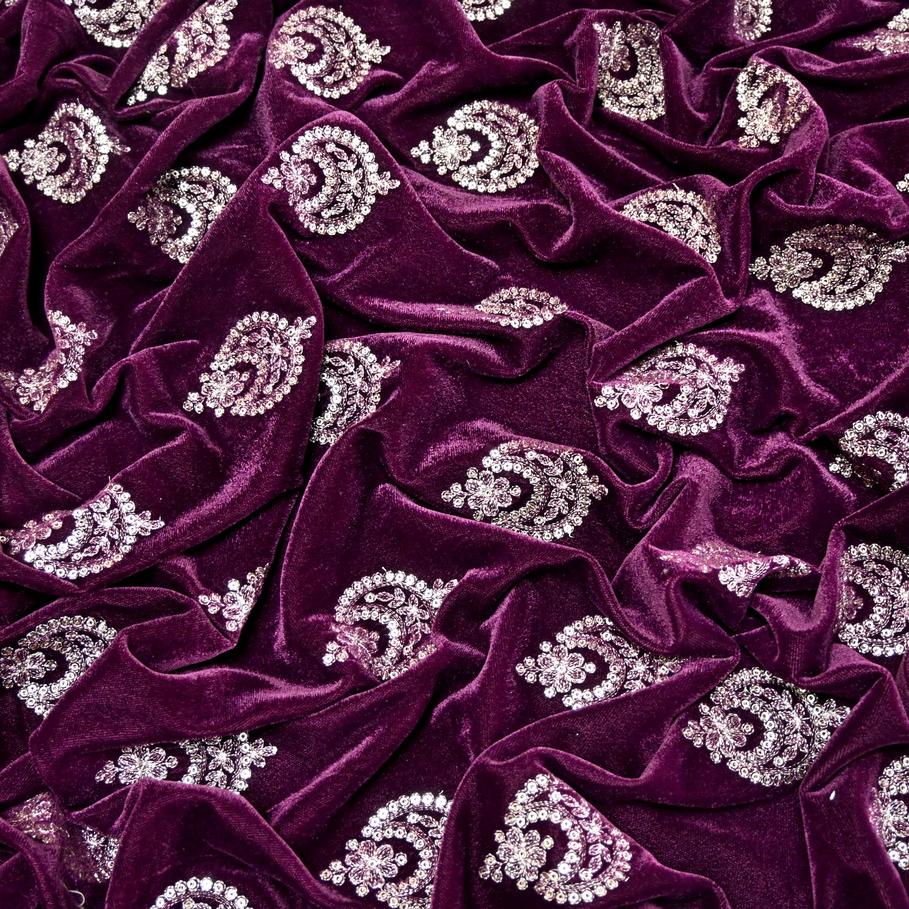 Ideal for ethnic wear, bridal outfits, party gowns, lehengas, blouses, sherwanis, dupattas, and home décor projects, this fabric drapes gracefully and exudes timeless elegance. The plush velvet base enhances the embroidery, making every piece look grand and sophisticated.