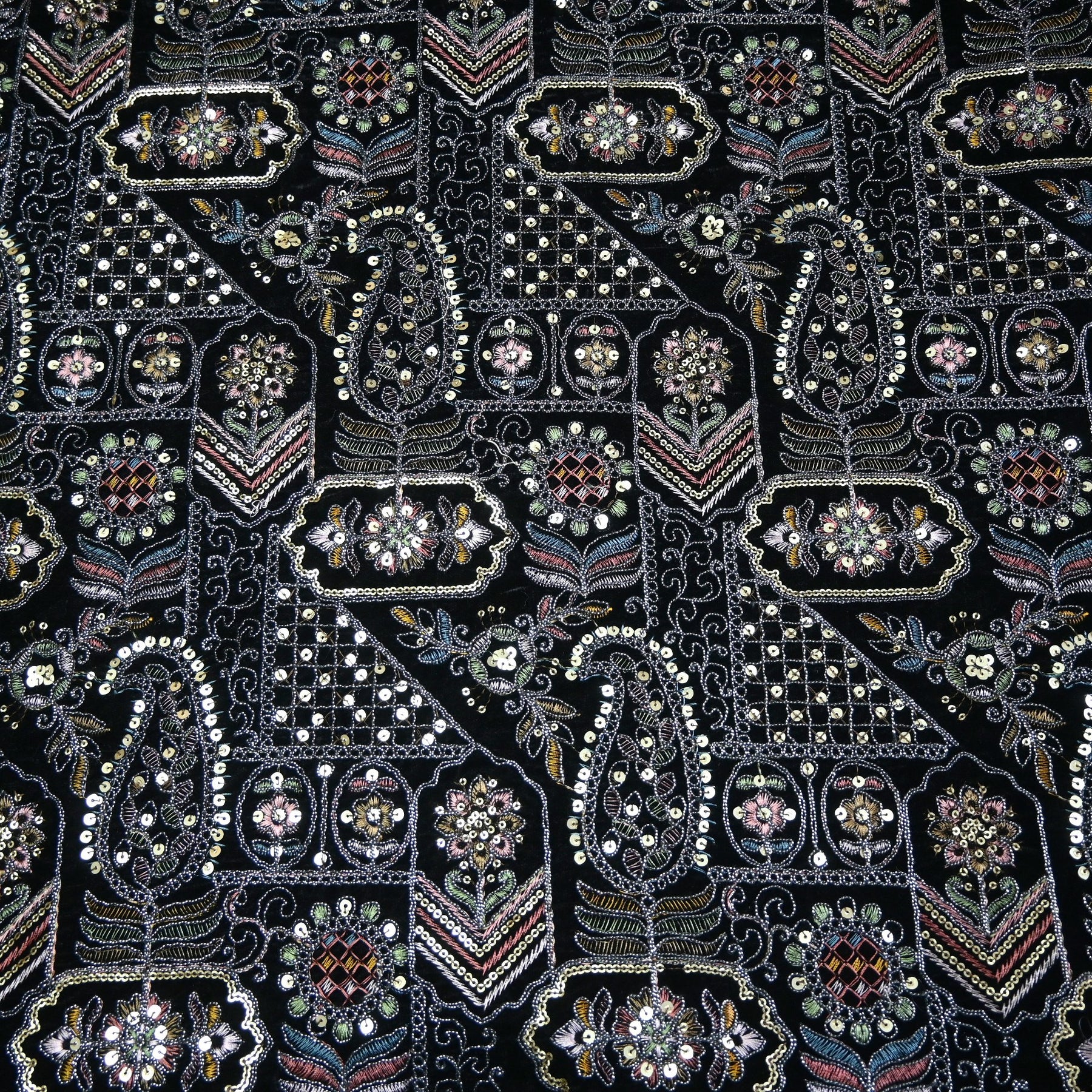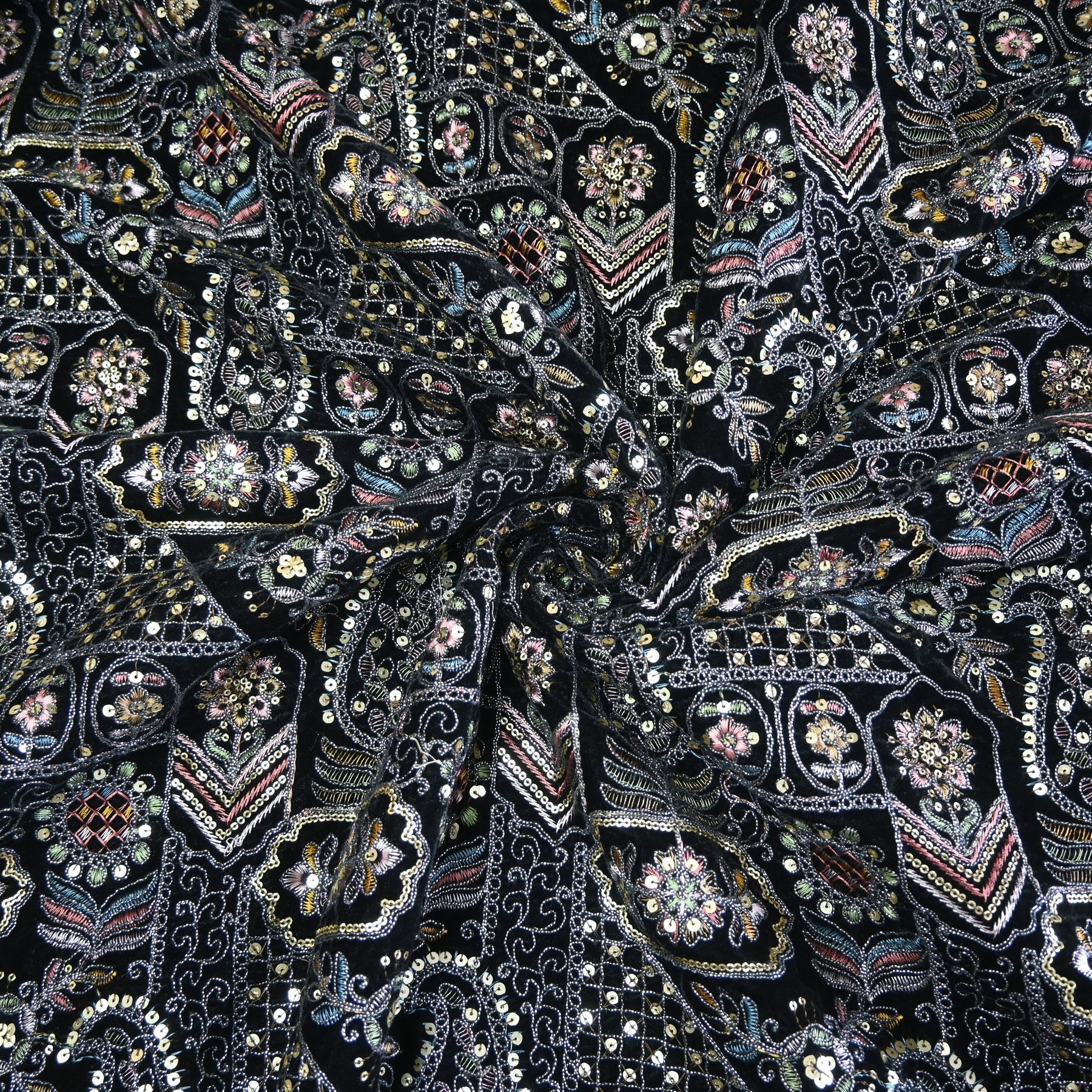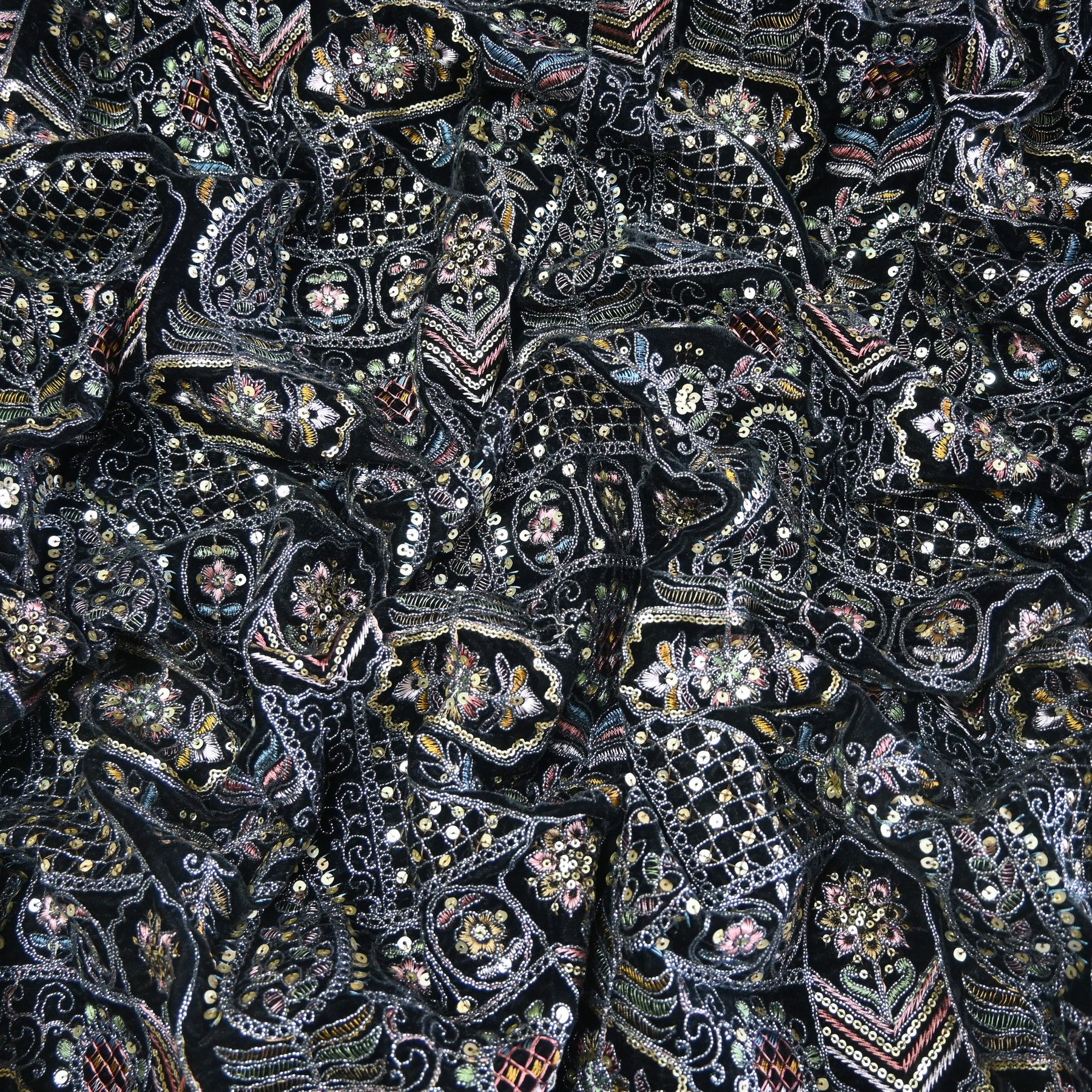 Product Name: Velvet Thread With Zari Sequins Embroidery Fabric
