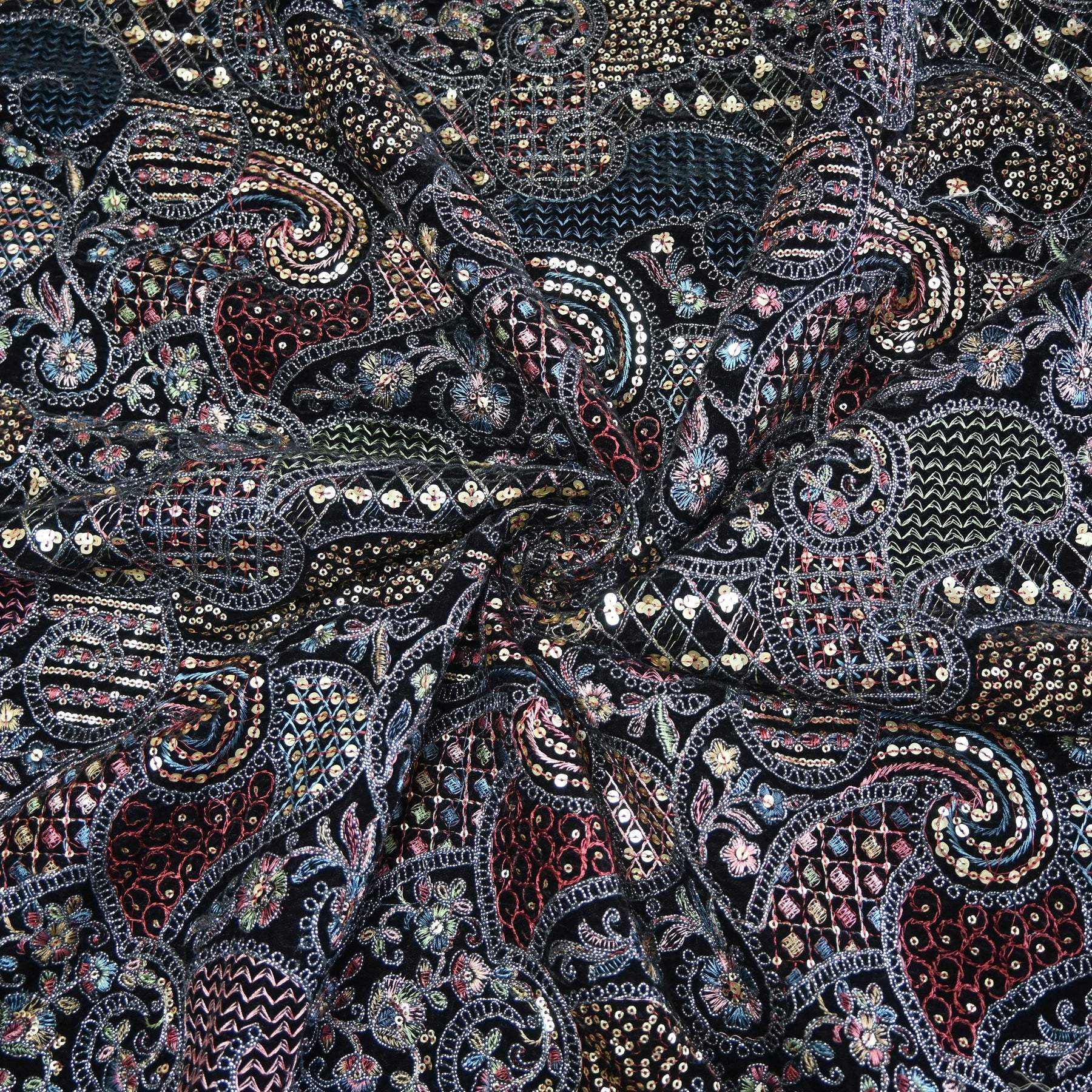 Product Name: Velvet Thread With Zari Sequins Embroidery Fabric