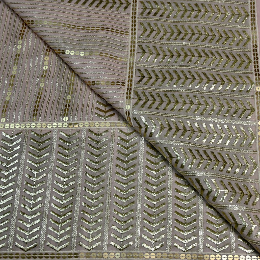 Add elegance to your creations with this beautifully Viscose Georgette Zari With Sequins Embroidery Fabrics. Lightweight and semi-sheer with a soft, fluid drape, this fabric is perfect for ethnic and contemporary wear. The shimmer of hand-placed mirrors enhances its luxurious appeal, making it ideal for sarees, lehengas, kurtis, dupattas, and designer garments.