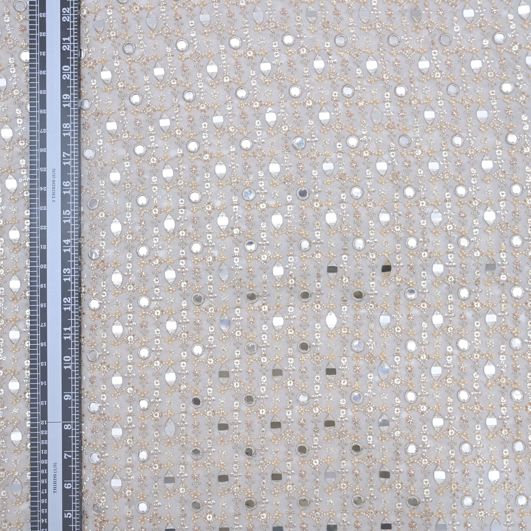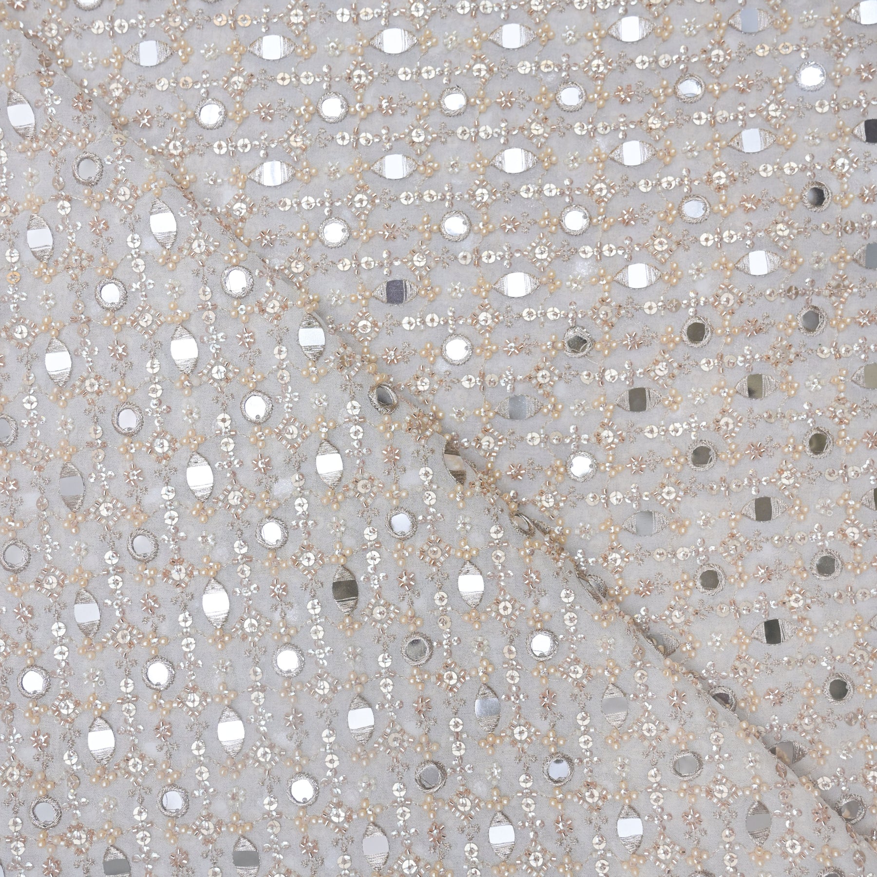 • Product Name: White Georgette Fabric with allover Mirrorwork, Zariwork & Pearl